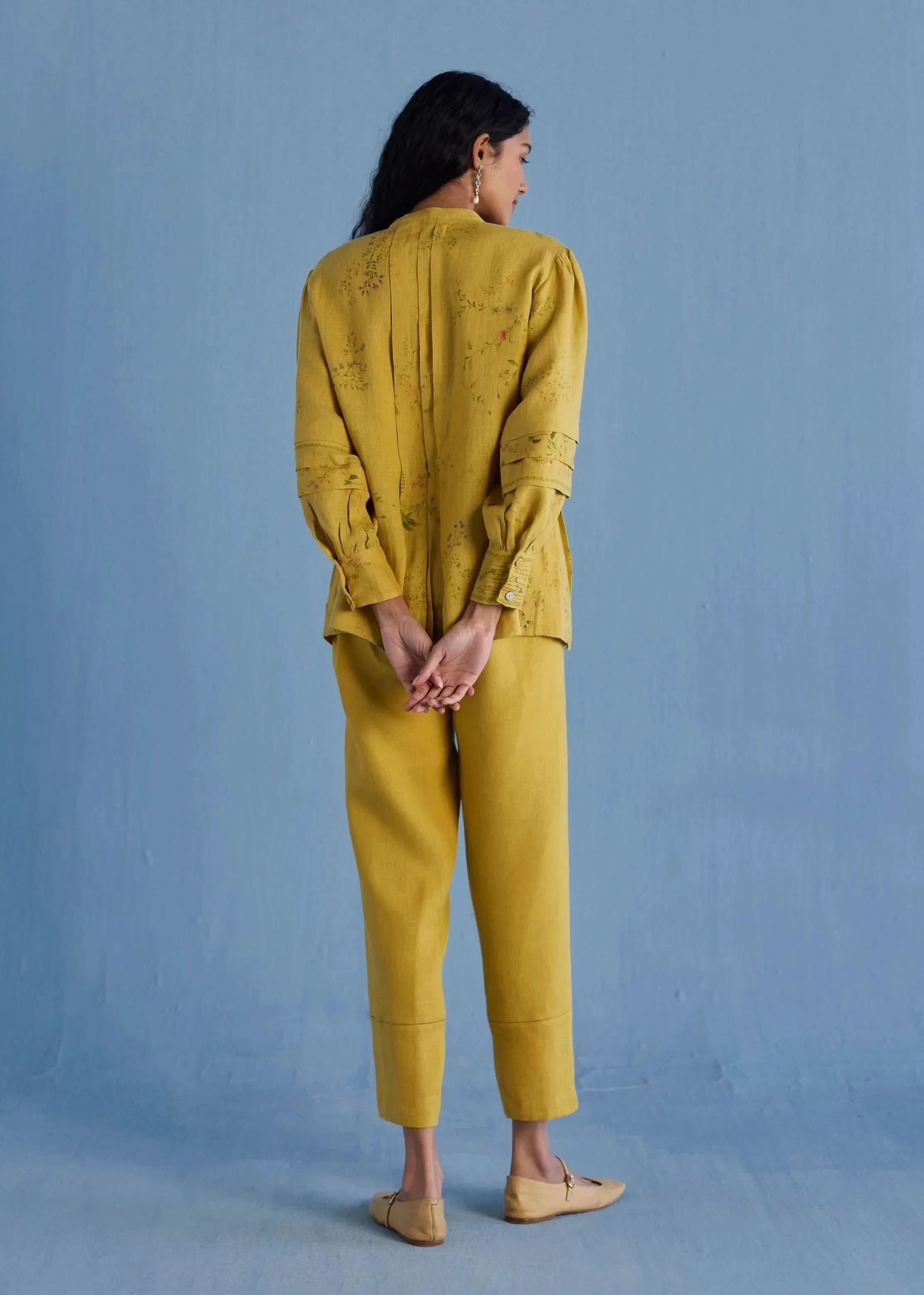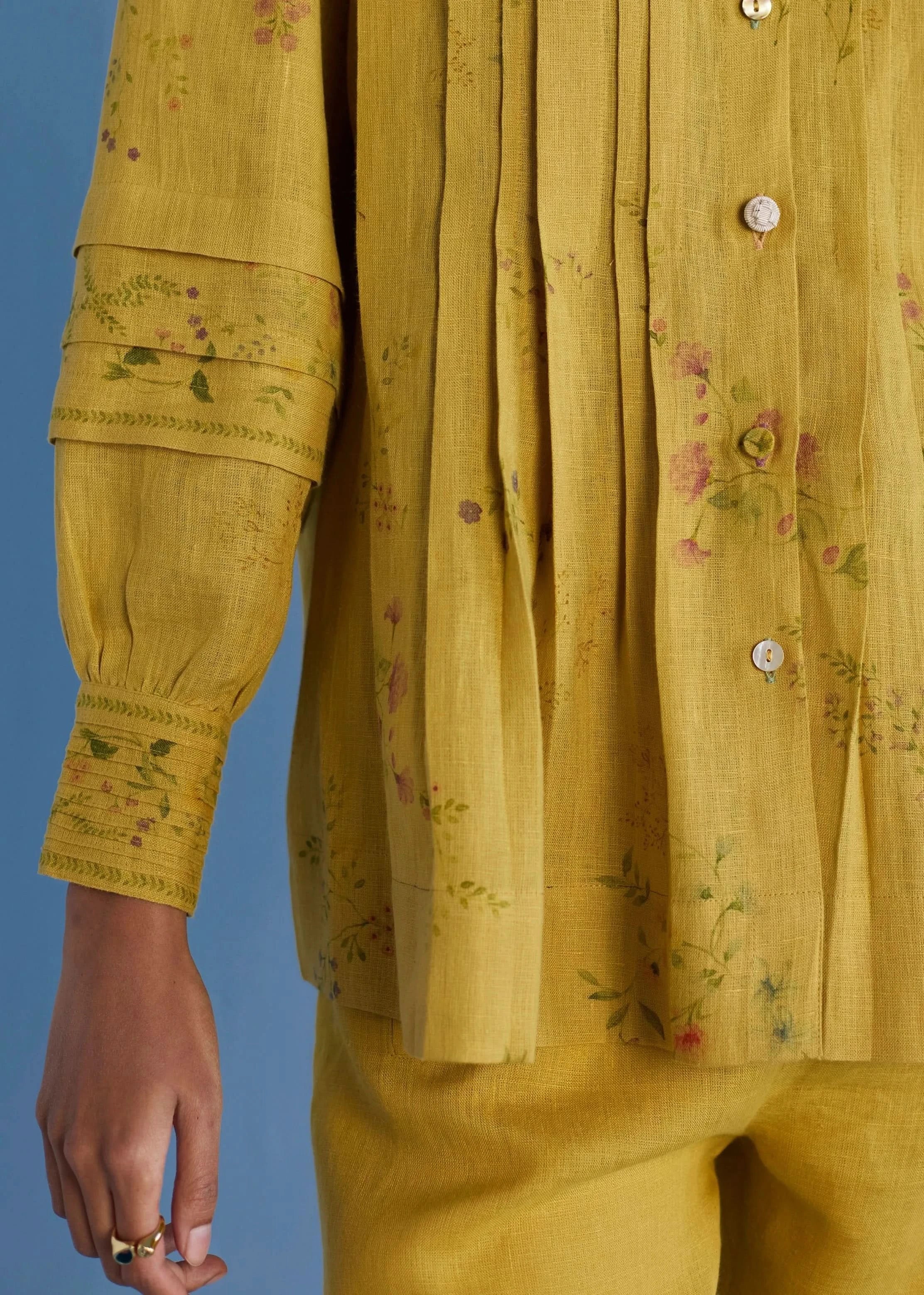 Akavi Pleated Floral Linen Co-Ord Set-Ochre