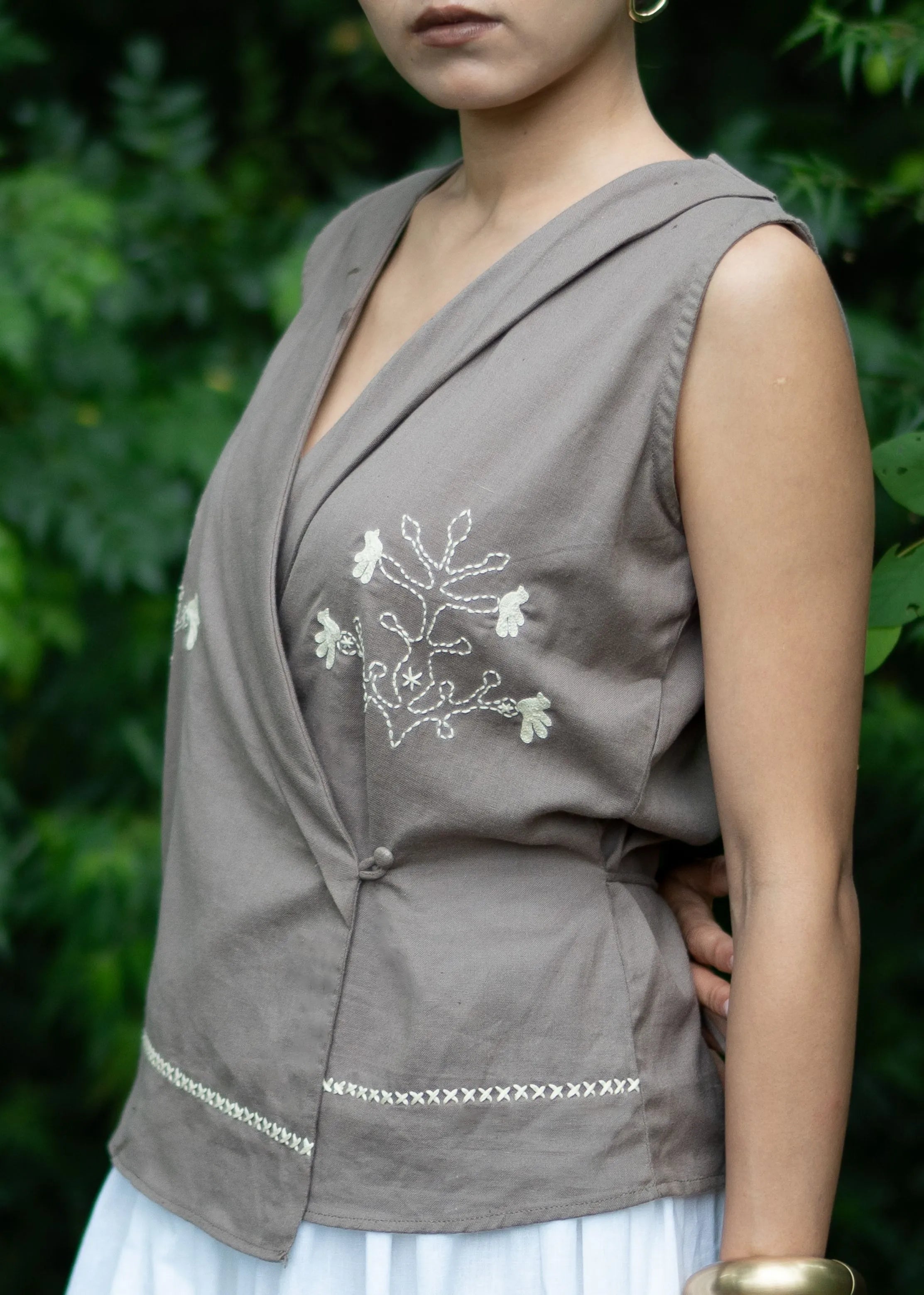 This boat neck top features delicate front embroidery that adds artisanal finesse to your look. The back tie detail allows you to adjust the fit at the waist for a flattering, feminine silhouette. Designed for versatility, it transitions seamlessly from day to evening wear.