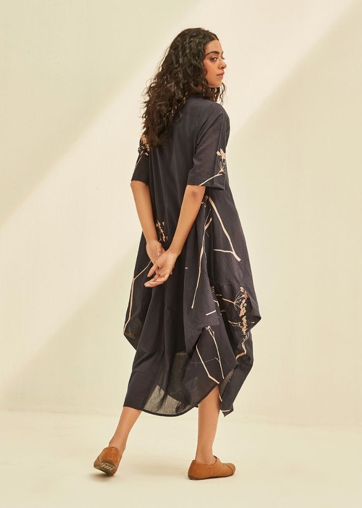 No Return No ExchangeEclipse embraces the serenity of nature during summers. adorned with a delicate floral print, it features a v neckline and side cowls.Handcrafted in India. Side seam pockets. Fully lined.