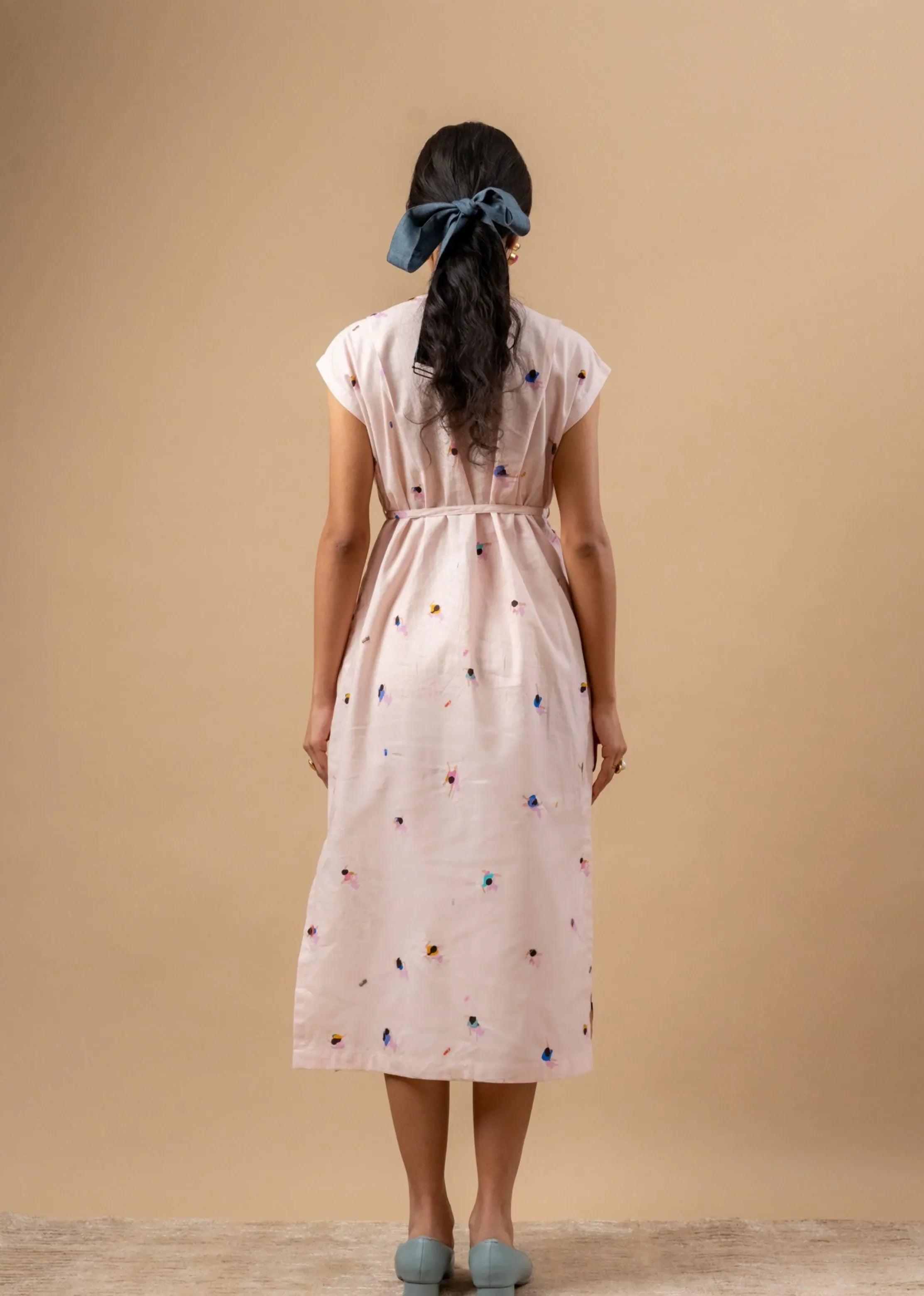 Straight fit organic cotton dress, with belt, side pockets, doodle embroidery and side slit. Each piece may come with an extra patch or embroidery to save as much fabric as we can.