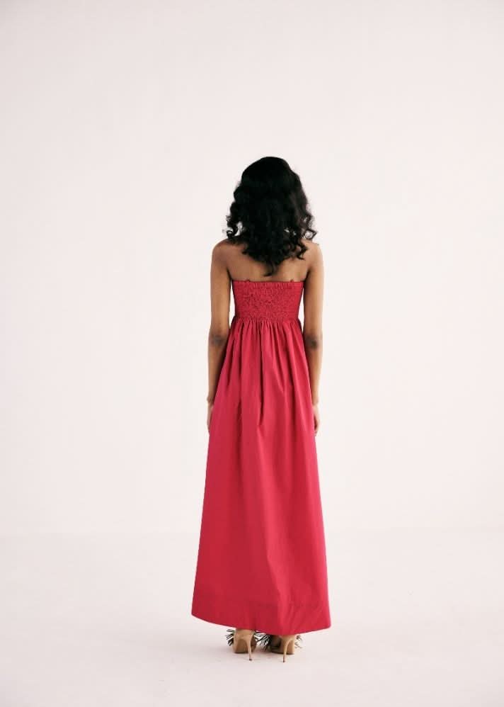 No Return No ExchangeAn elegant off shoulder hot pink gown crafted in breathable poplin, with fitted bust and elasticated back featuring double side slits and a peekaboo ikat contrast lining. comes with detachable straps. Off shoulder. Handcrafted in India Peek a boo ikat lining Color: hot pink Side seam pockets.