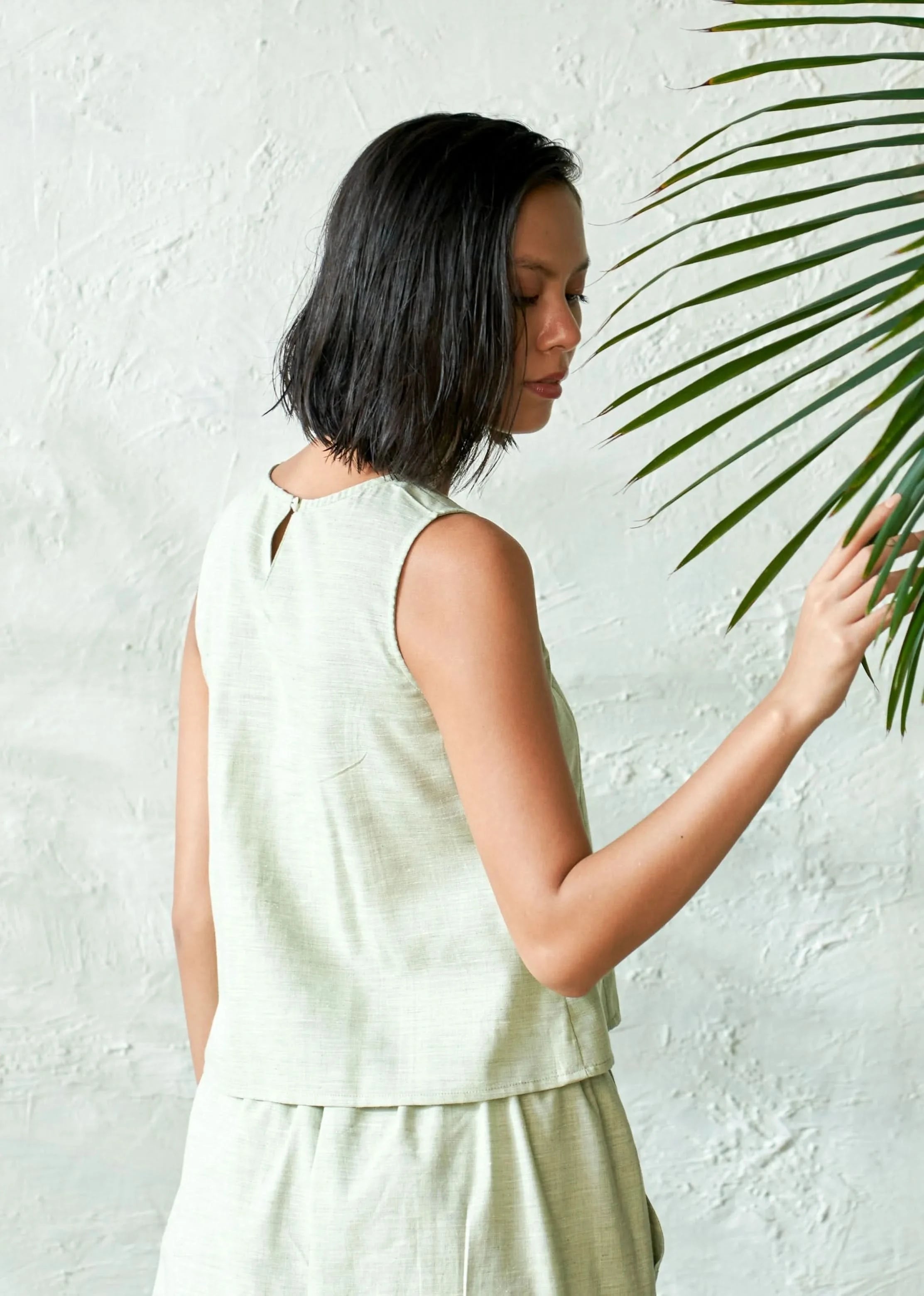 A refreshing matcha green sleeveless top designed to make a statement. Highlighting delicate smoking detail on the front, this top blends traditional artistry with modern appeal. Crafted from lightweight, breathable fabric, it's perfect for casual outings or laid-back occasions, bringing effortless style and comfort to your wardrobe.