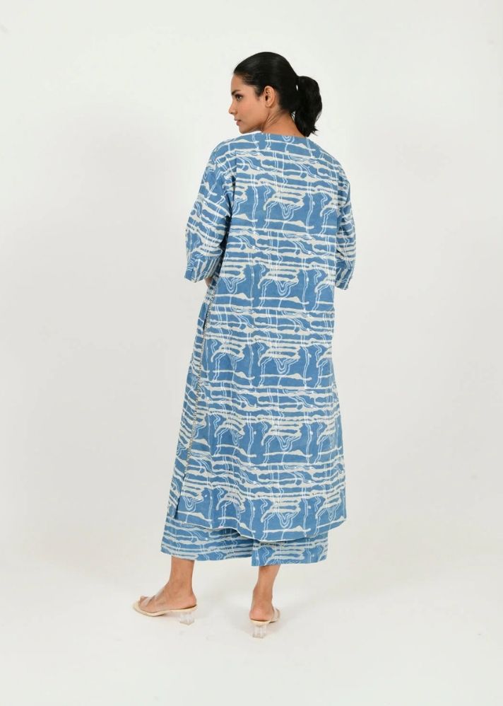 Indigo Splash Buttoned Dress in 100% Organic Cotton / Gots Certified fabric. Surface technique involved - PRINT -DABU (MUD RESIST PRINTING )