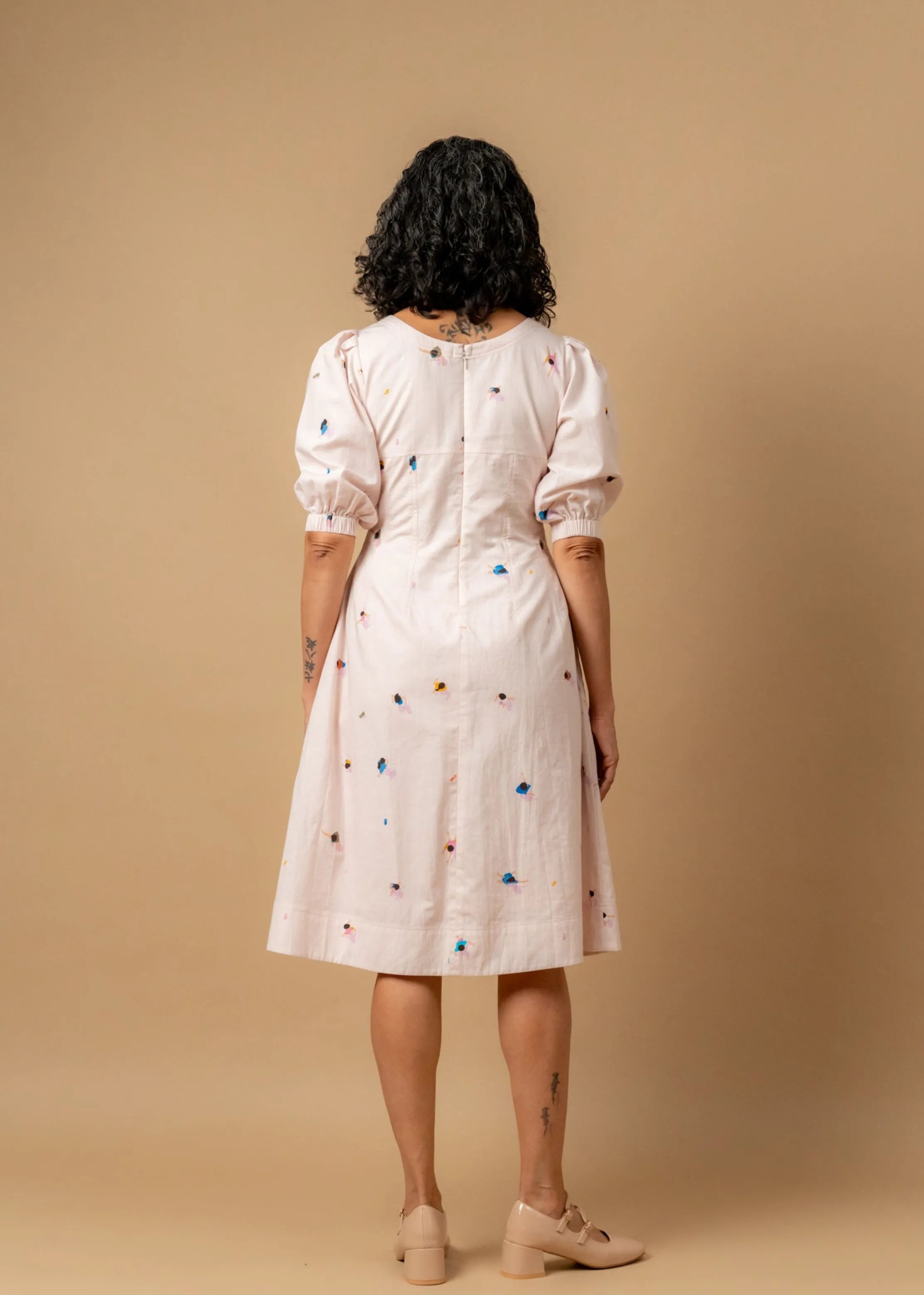 Fitted bustier dress with elasticated sleeves made from denim waste Each piece may come with an extra patch or embroidery to save as much fabric as we can. Each piece may look different, as this is made from upcycled denim waste.