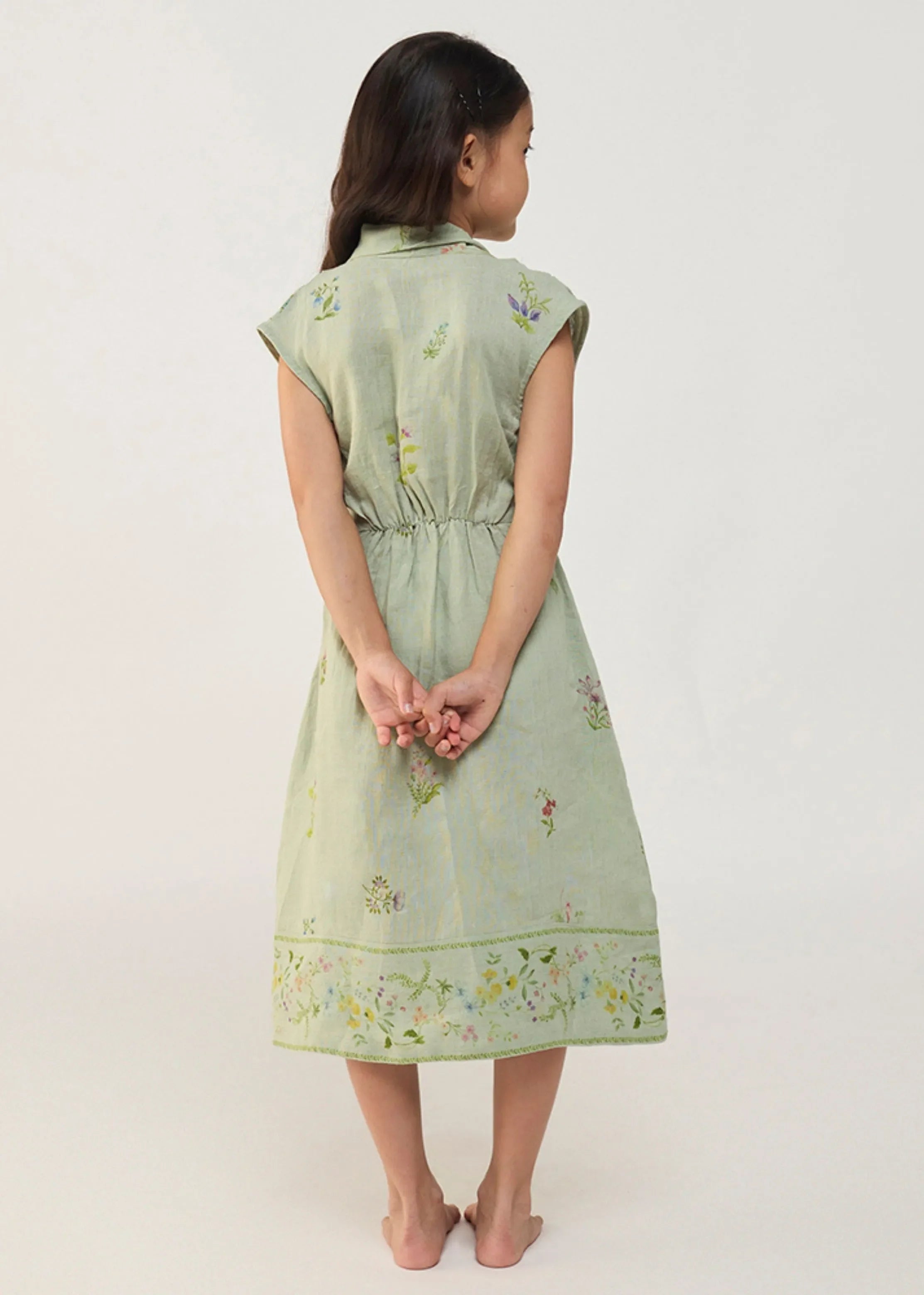 Our favourite contemporary shawl collar midi dress is handcrafted from our signature yarn-dyed linen with a hand-painted floral print with gathers at the waist. The Mema Dress is finished with a printed sheer linen border at hem, pockets and has blanket stitch detailing on the edge of the belt. We love the Mema dress for its versatility as it's easy to dress down or up.