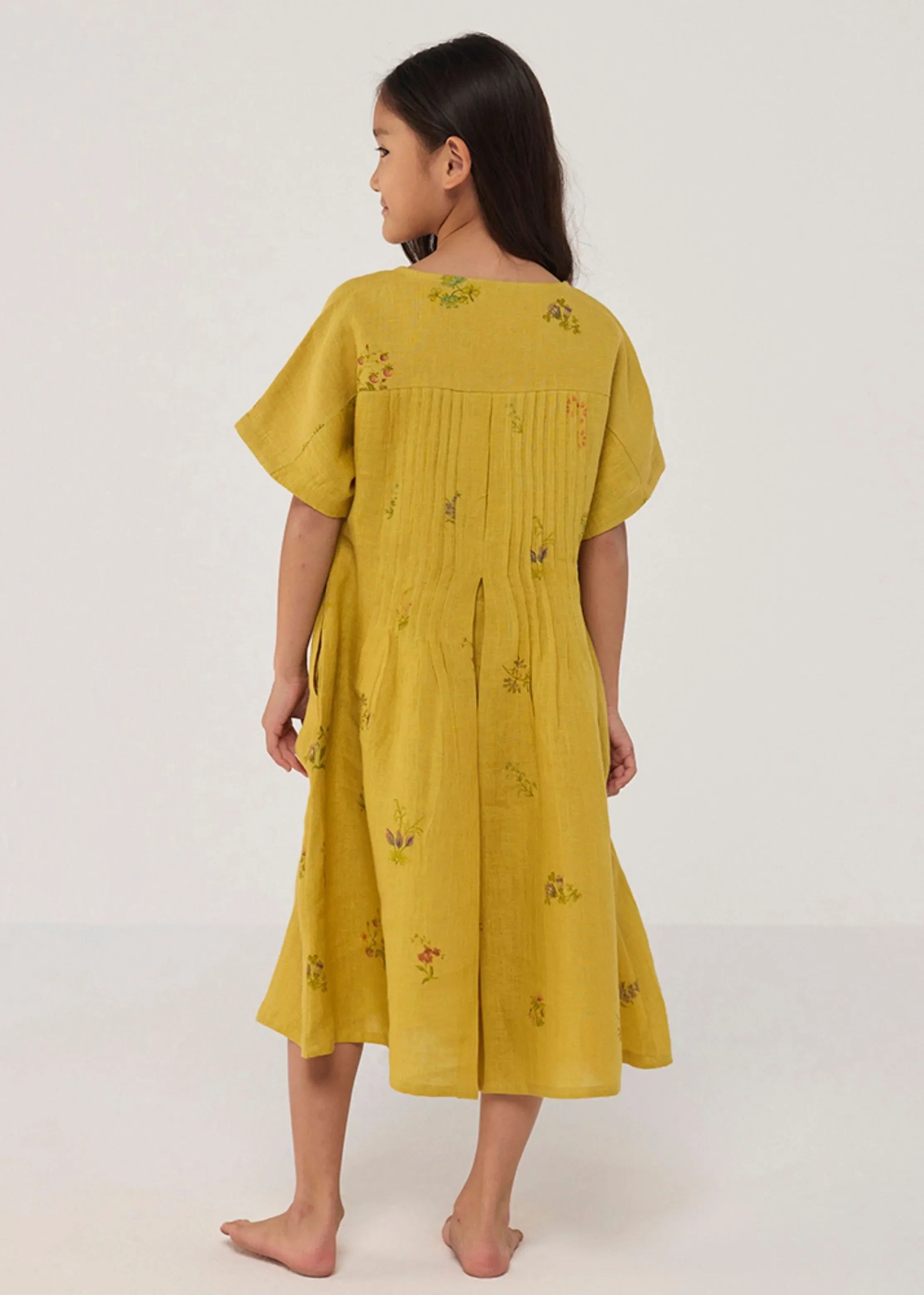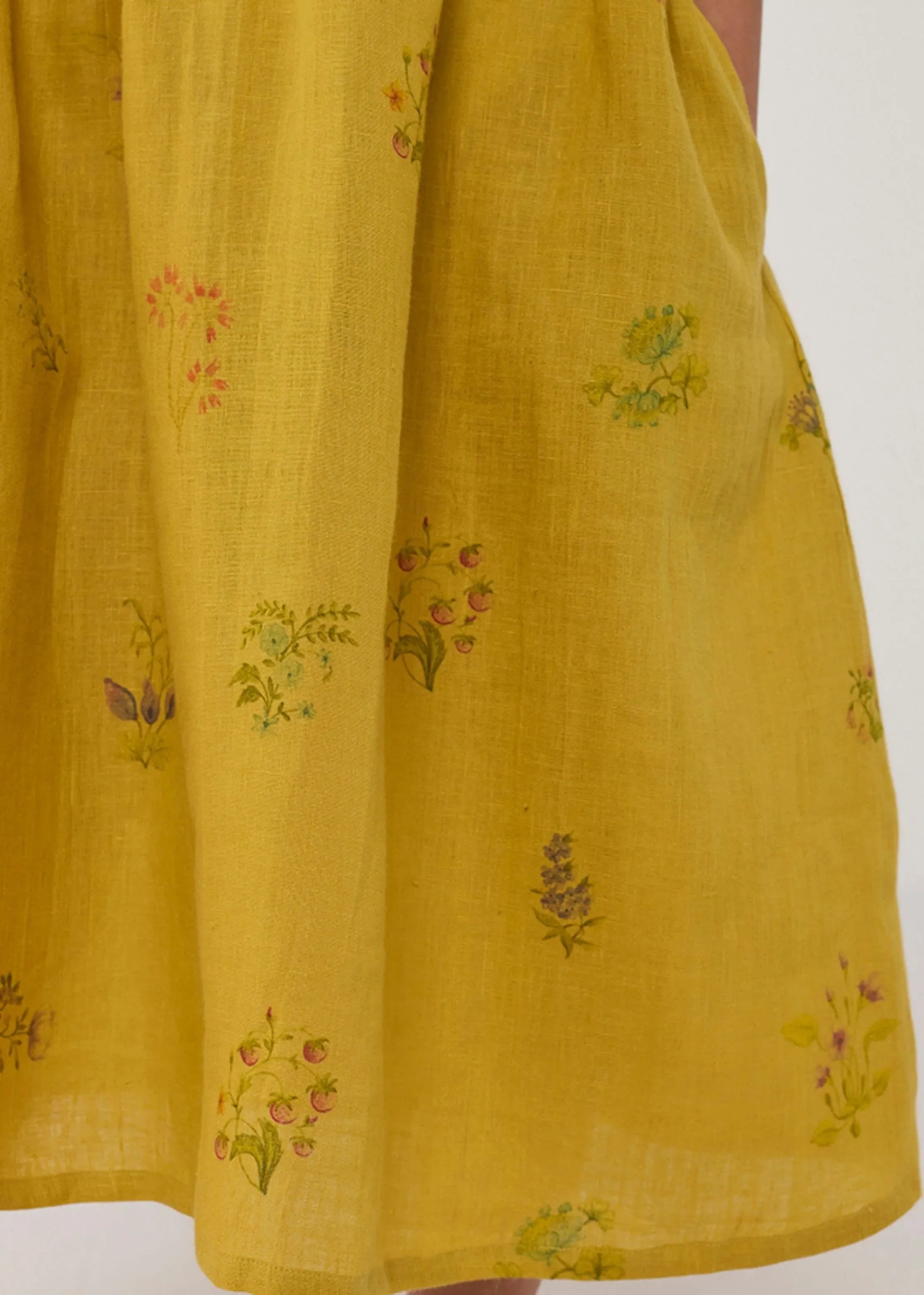 A timeless and easy-to-wear soft linen dress designed with a timeless hand-painted floral print, pockets and intricate pleat details at the back for easy movement and style. Perfect for balmy summer days.