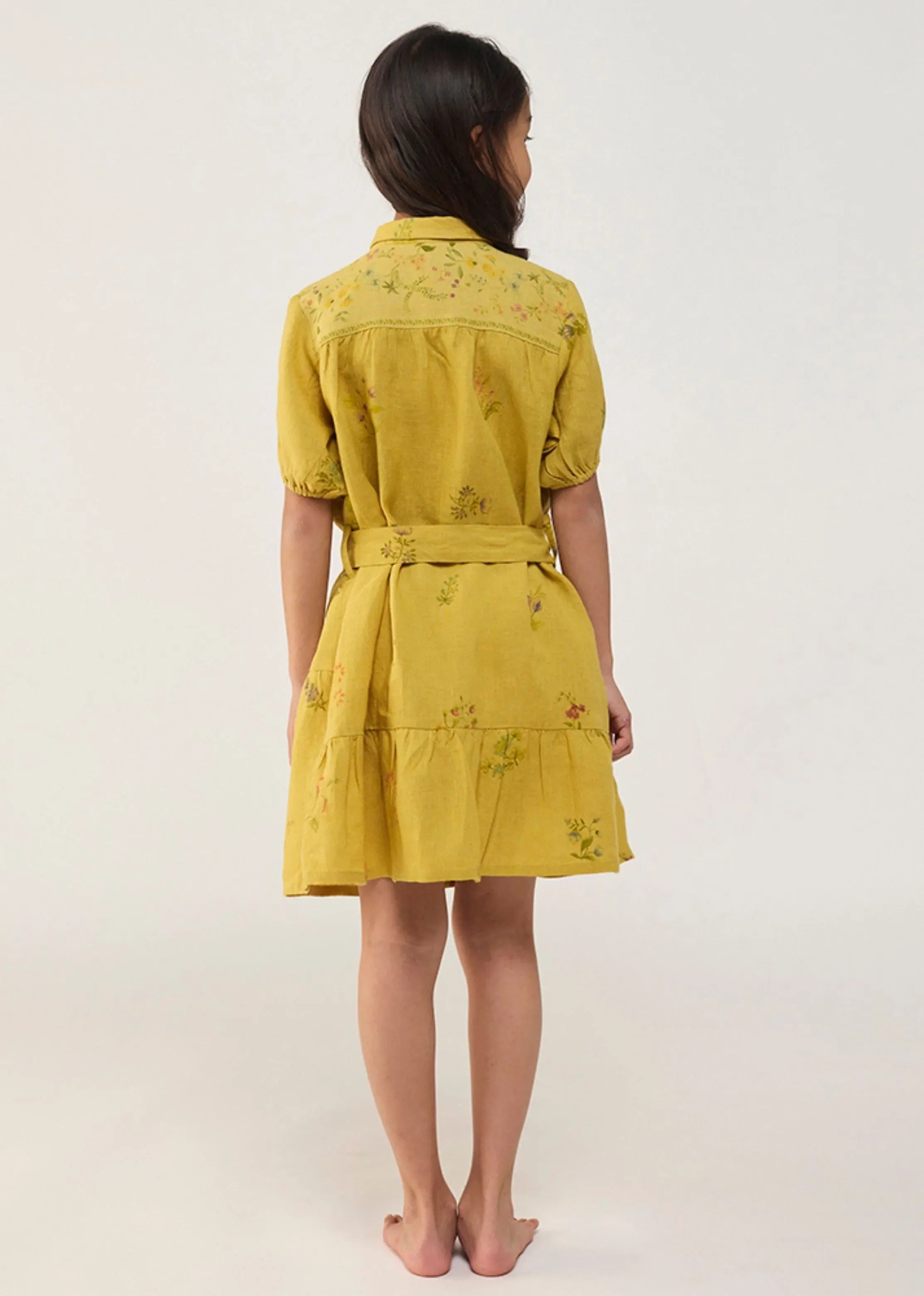 A summer panelled dress designed from a thoughtful floral printed yarn-dyed linens. Pockets and a border floral print at the back and side panels. A floral printed linen belt is included with the dress.