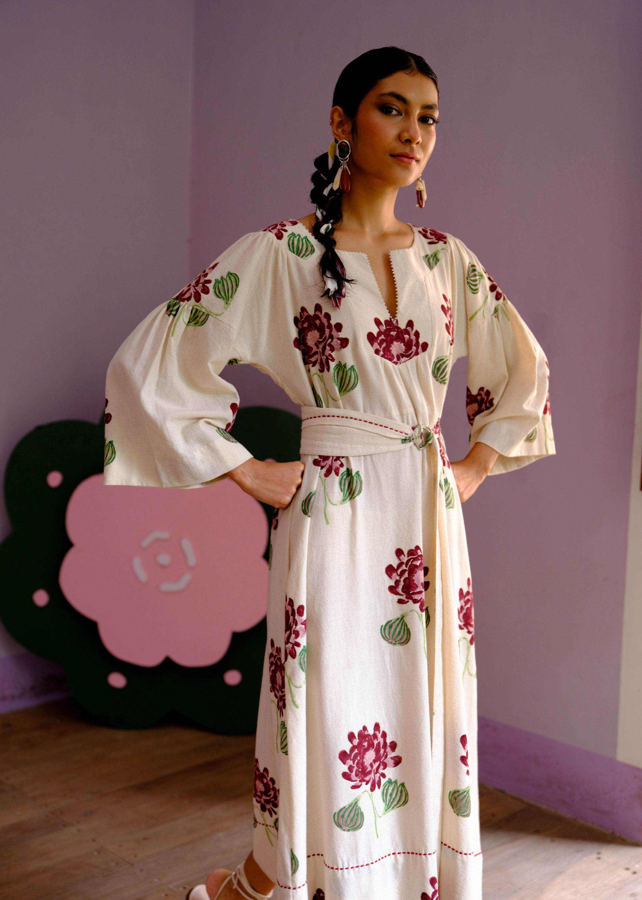 It's the dress to SAVE you. In the summer because it's so airy and comfortable. In the winters, cause it's full coverage - you’ll just need a pair of boots and a layer inside. Hand-block printed and crafted in handloom cotton, it’s a relaxed fit dress that comes with a belt for adjustment. Don’t miss the delicate, hand-embroidered pearl detailing on the neckline and stitch details around the hem. We believe customers have a right to know how their product was made. 5 metres of handloom cotton fabric sourced from Jaipur has been used for this piece. Hand-printed by our artisans in Jaipur, manufactured in our workshop at Pune, India. This product is hand-printed in Jaipur, India using traditional techniques. Subtle variations in patterns are natural to this process. We believe this makes each creation unique and charming. Some call it je ne sais quoi. We call it JODI. If you wish to have the length of the garment altered, please mention your request in the special instructions section at checkout, with your desired length.