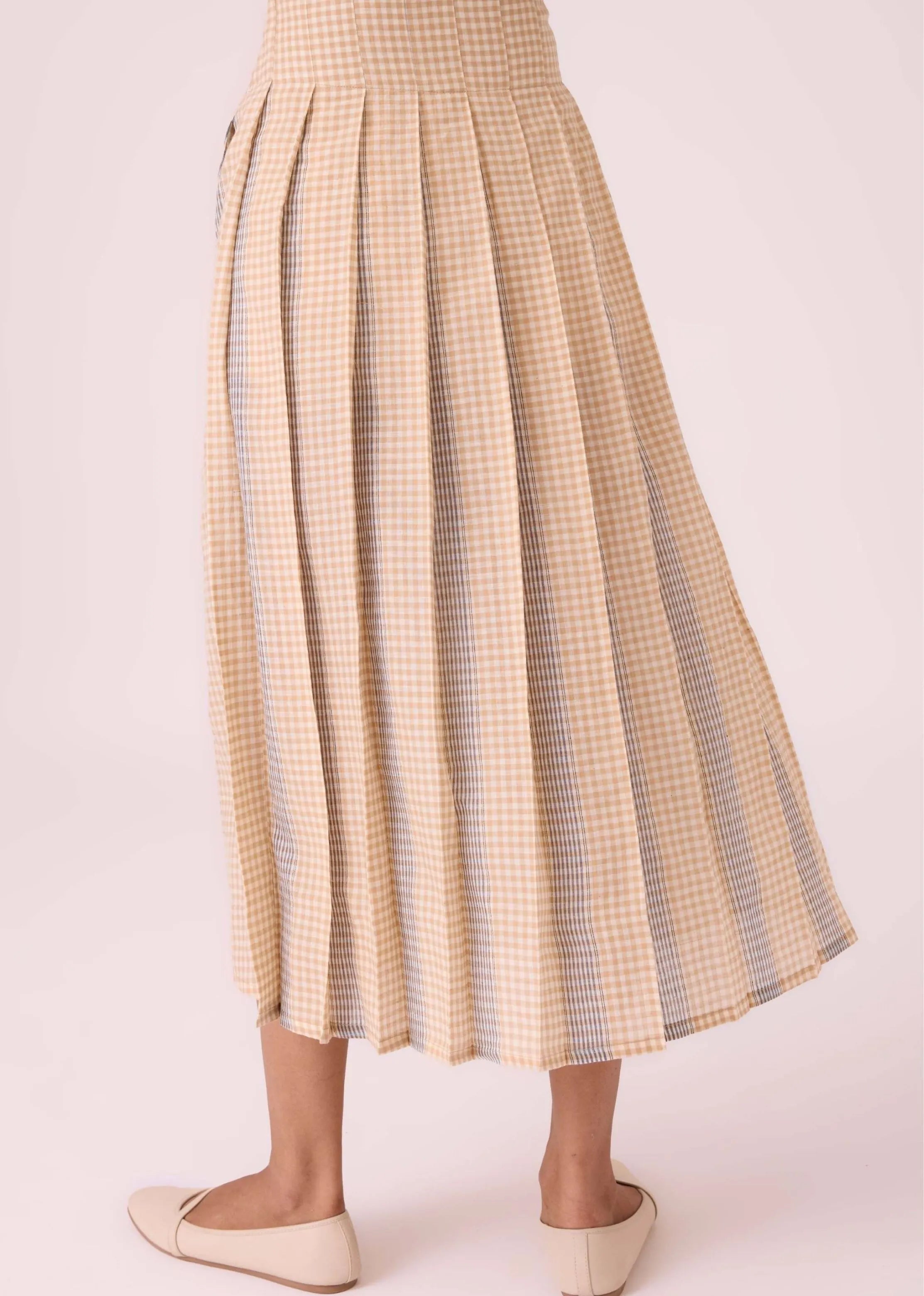 - Pleated midi skirt.