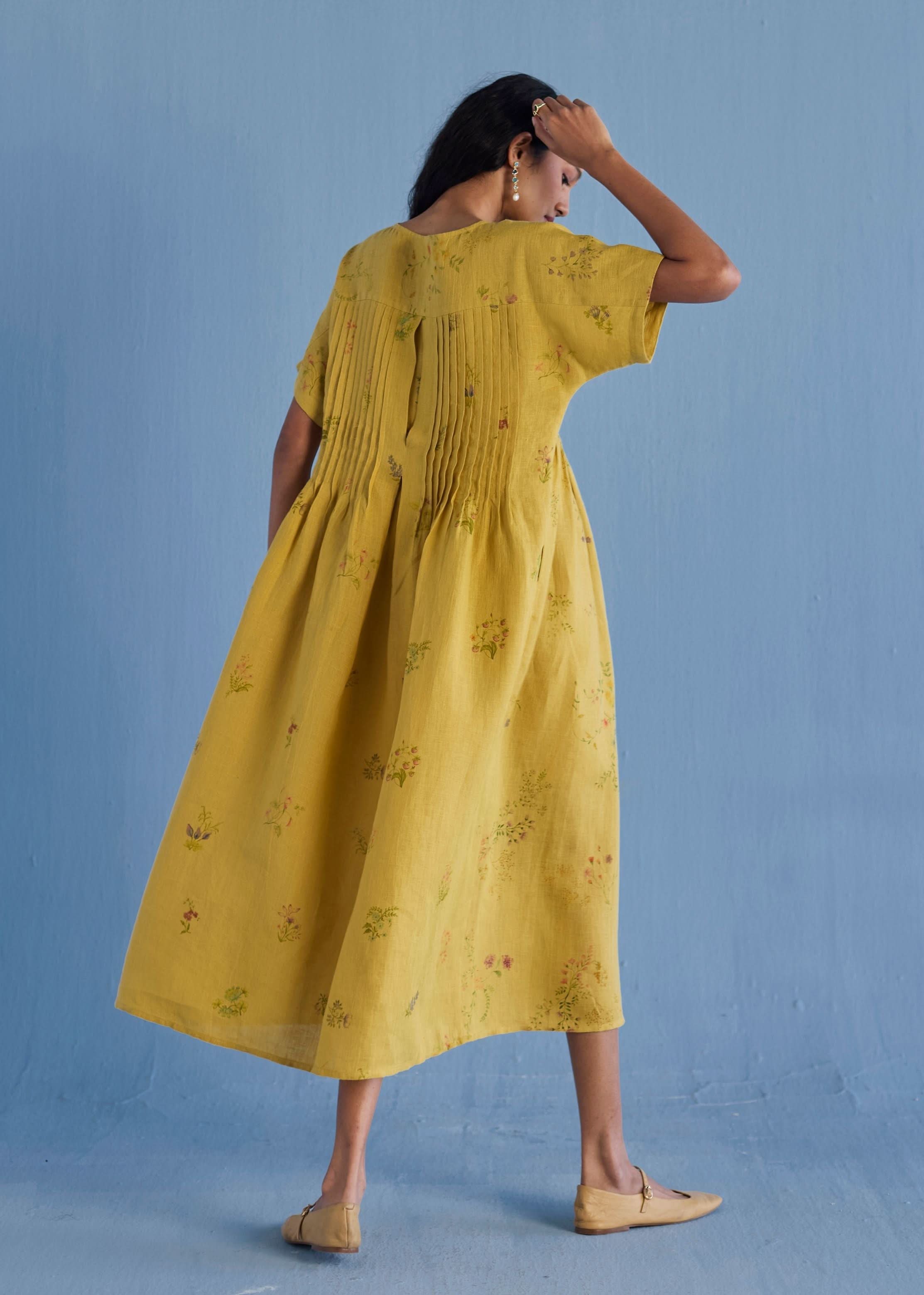 A timeless and easy-to-wear soft sheer linen dress designed with a soft timeless hand-painted floral print, pockets and intricate pleat details at the back for easy movement and style. The dress can be worn over any plain linen or cotton dresses that are part of your wardrobe. Perfect for balmy summer days.