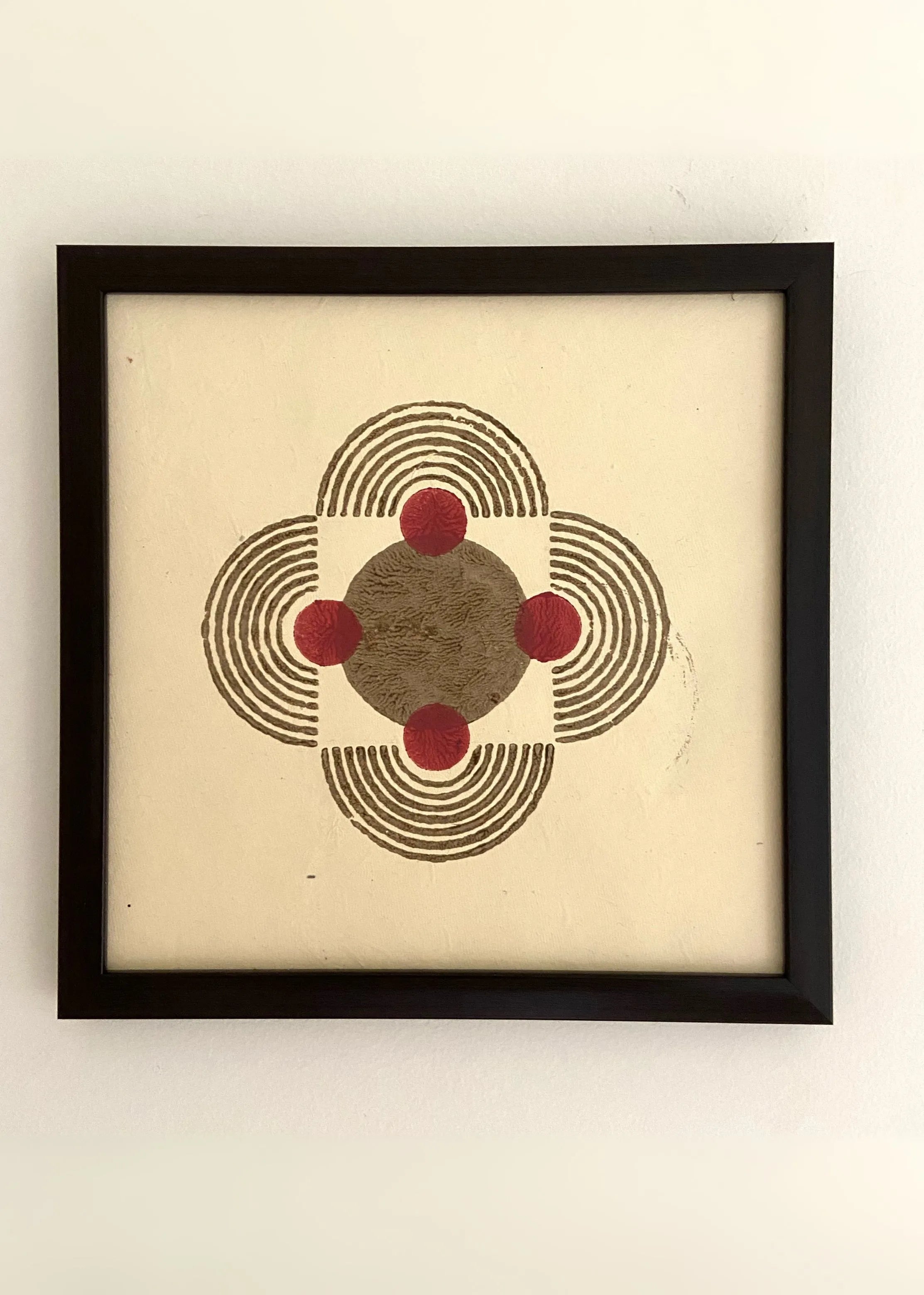 Introducing our exquisite wall frames featuring handblock printed artwork on meticulously crafted handmade paper. Each frames is a masterpiece, showcasing the timeless beauty of traditional artistry combined with modern elegance. Adorn your space with these unique pieces, perfect for adding a touch of sophistication and charm to any space. Handcrafted with care, theme frames are not just decor but statement of style and culture. Bring the allure of artisanal craftmanship into your home or office with these wall frames. ARTWORK: Breathe in, Breathe out - Red (Set of two) General Care: Wipe with dry cloth Assembly: Simply hang on your walls and style your space. Dimensions: 10" x 10" (2)