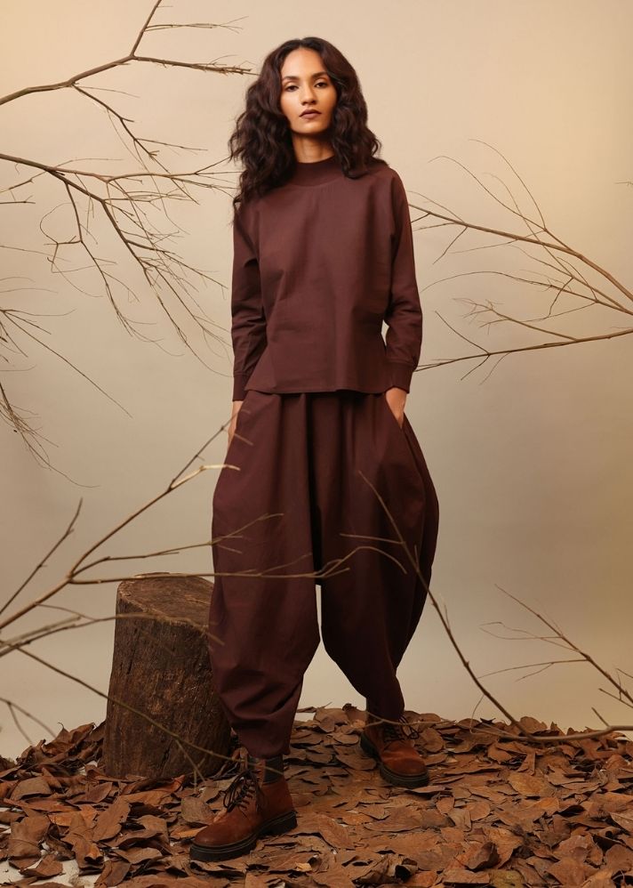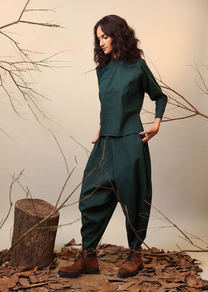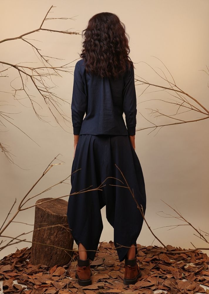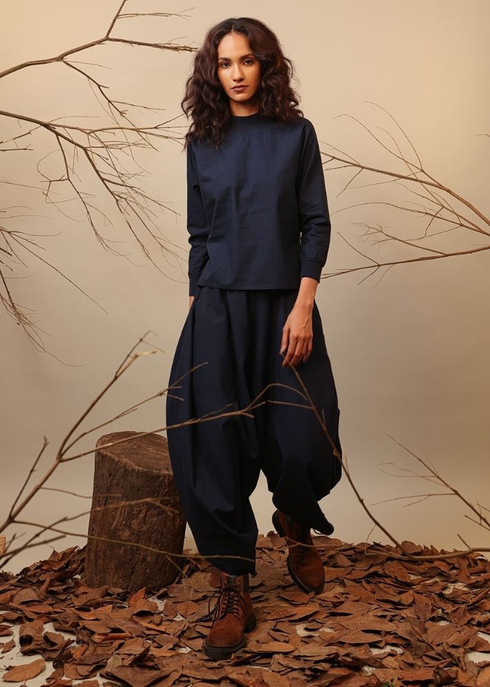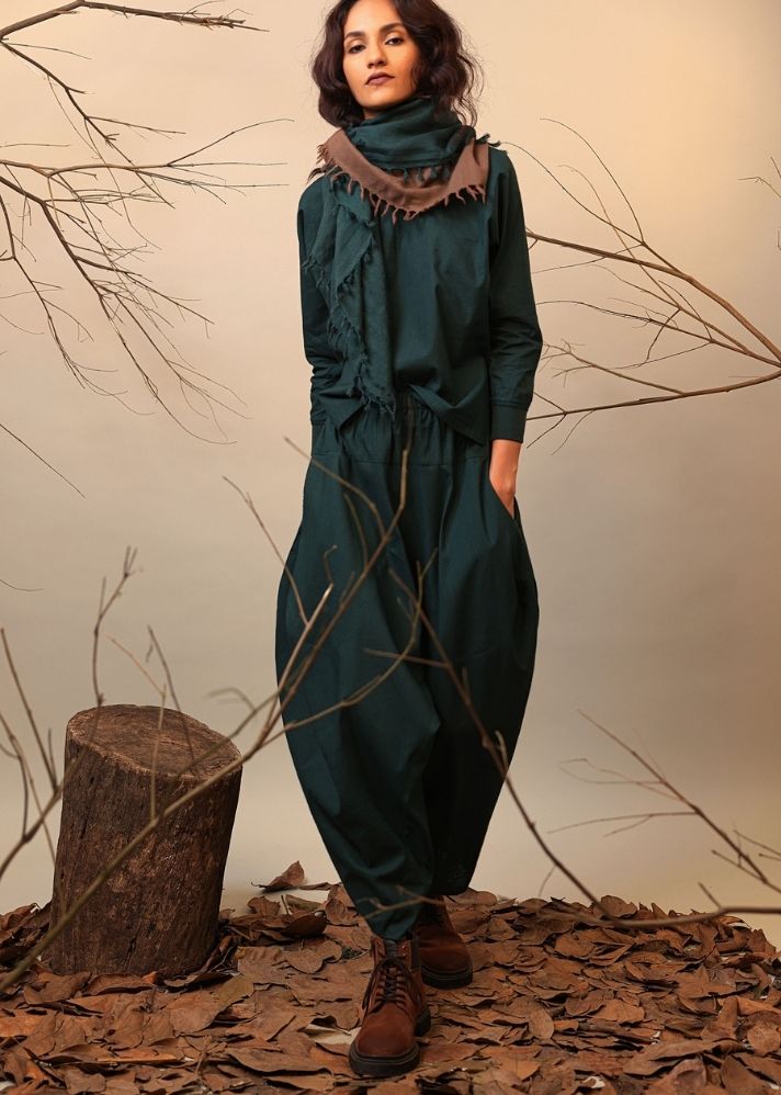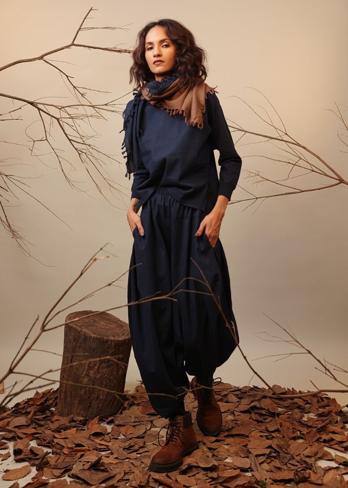 Dhoti style balloon pants with full elasticated waist and side pockets. Complete the look with any of the tops from this collection. Add our scarf and complete the winter attire.