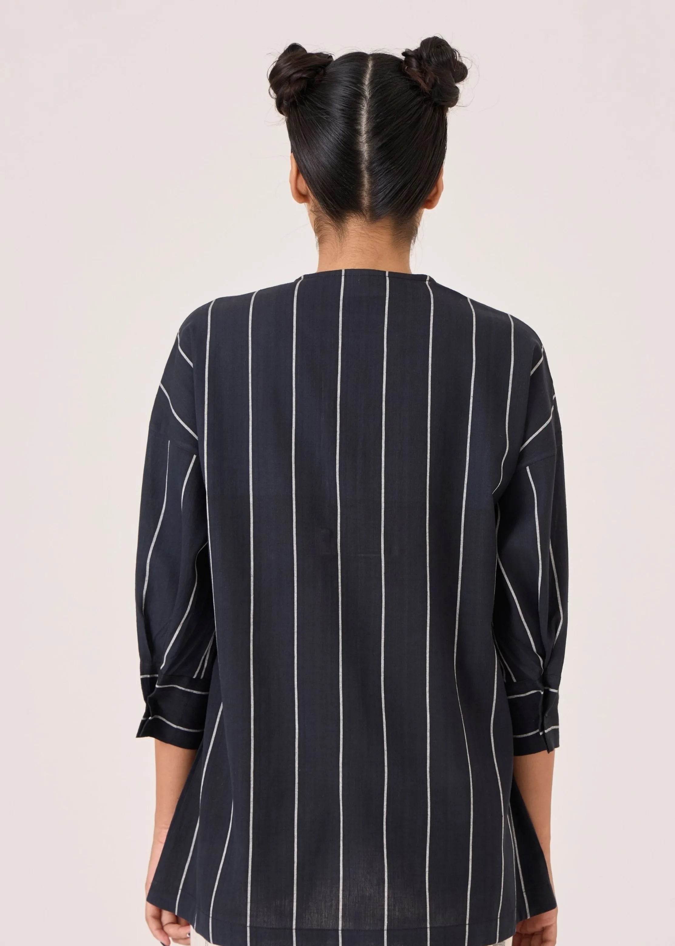 - Lightweight easy fit top - Wide button placket - Drop shoulder with 3/4th sleeves - Pleated adjustable cuff