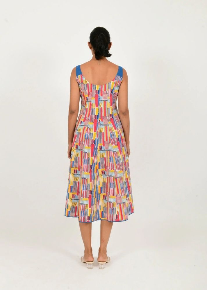 Scribble Multi Doll Linen Dress in 100% Organic Cotton / Gots Certified fabric. Surface technique involved - BLOCK PRINTING
