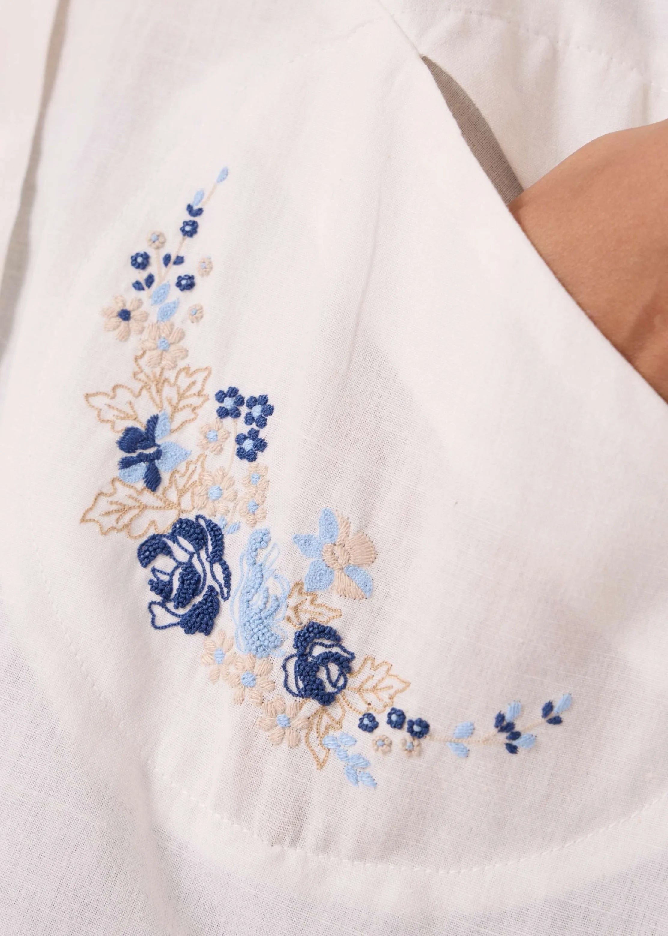 - Hand embroidered