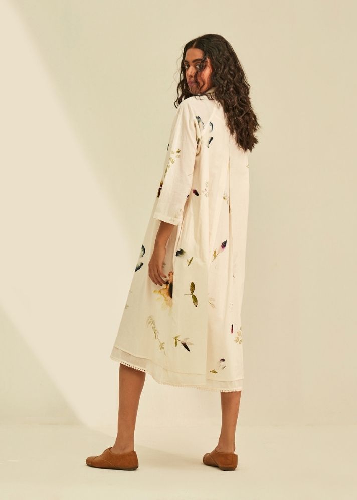 No Return No ExchangeSilent Whispers captures the essence for a carefree season, crafted incotton mul, featuring a delicate floral print on off white is effortless and your go-to pick for the season. Handcrafted in India. Side seam pockets. Fully lined.