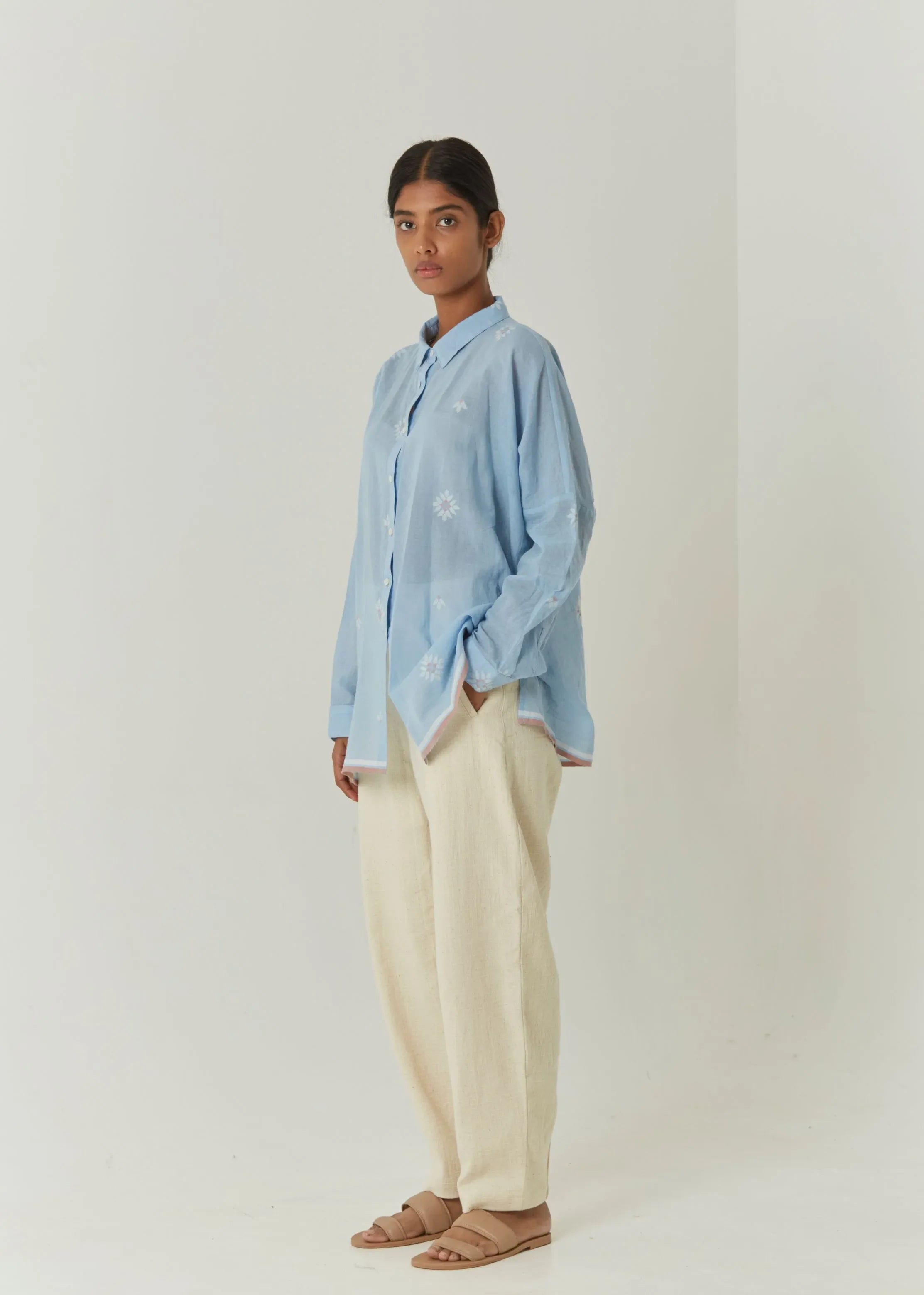 Experience unparalleled comfort with the Skye shirt, meticulously crafted from 100% handwoven cotton. Its relaxed silhouette, complemented by subtle contrast selvedge details at the hem and yoke, ensures a breathable and effortlessly comfortable fit for all-day wear. Each Skye shirt tells a story of heritage: its unique motif is the legacy of 3rd-generation Jamdani master weavers, with every meter of fabric taking over 14 hours to create. Feel good knowing your garment is ethically produced and dyed with Azo-free dyes.