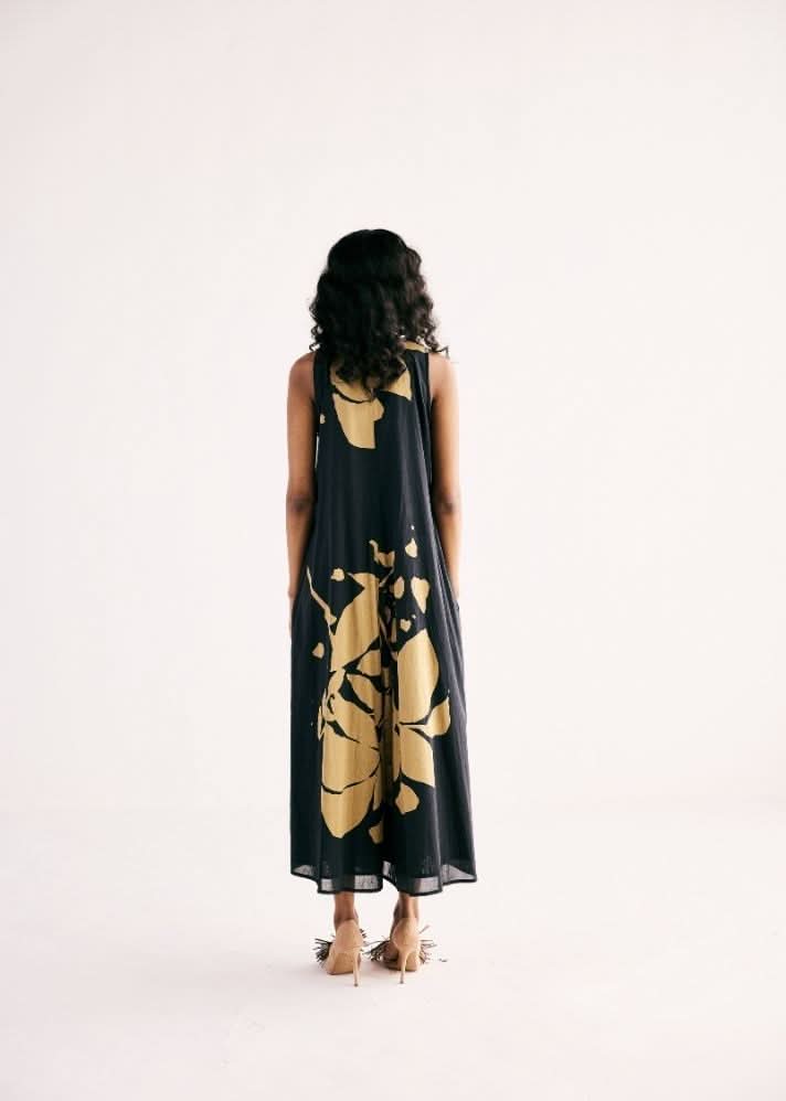 No Return No ExchangeA black floral scatter printed jumpsuit with a front zipper opening and v neckline in classic A line silhouette. crafted in soft breathable cotton mul. - Handcrafted in India. - Side seam pockets. - Fully Lined..