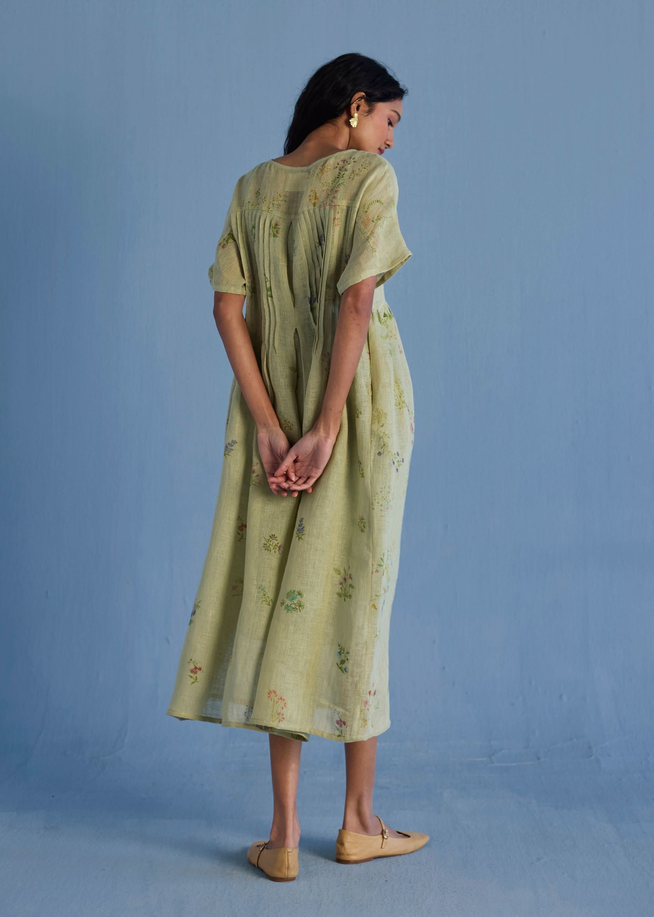 A timeless and easy-to-wear soft yarn-dyed linen dress designed with a soft timeless hand-painted floral print, pockets and intricate pleat details at the back for easy movement and style. The Uniko dress is perfect to wear for busy days running around to days spent lazing around.