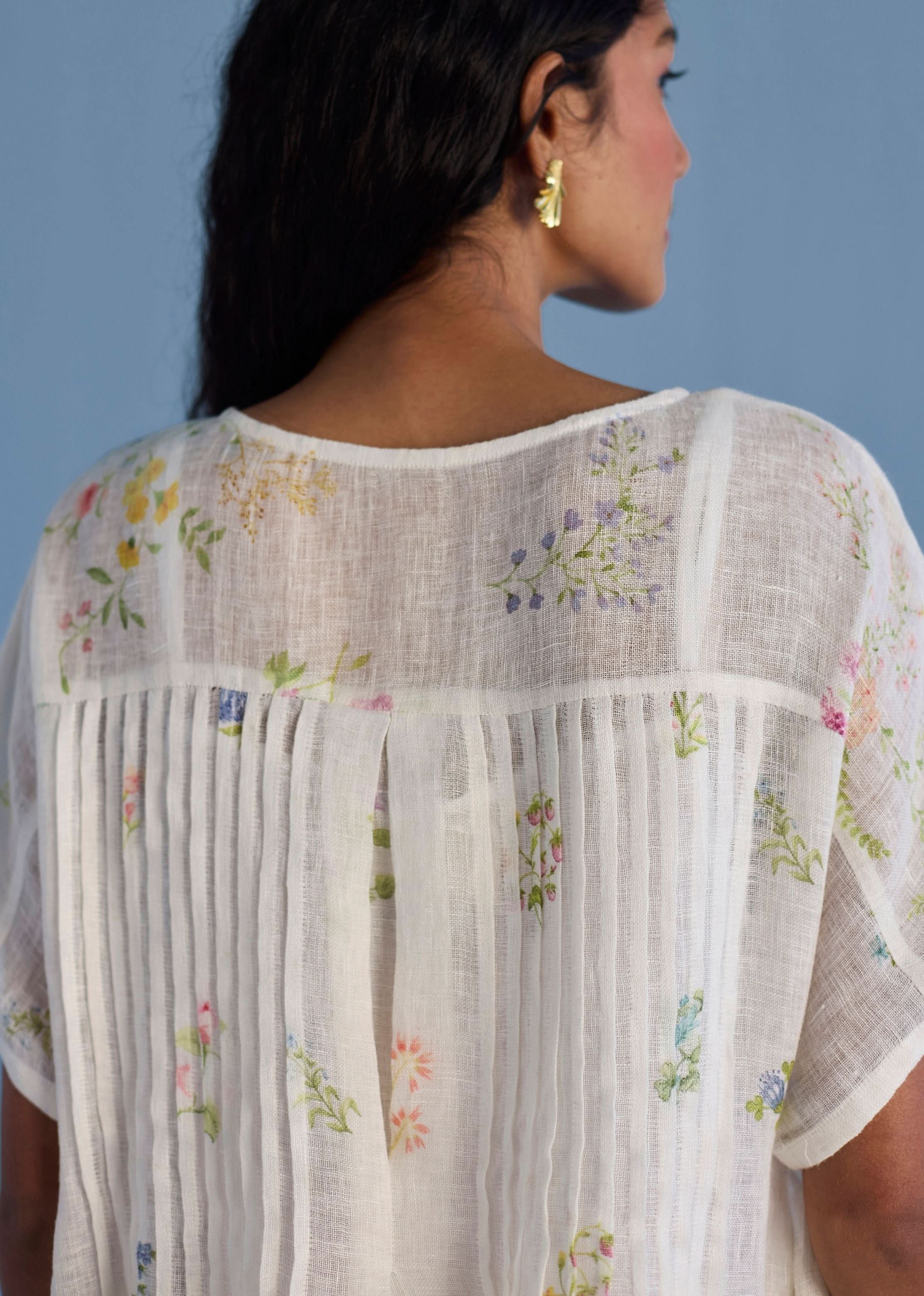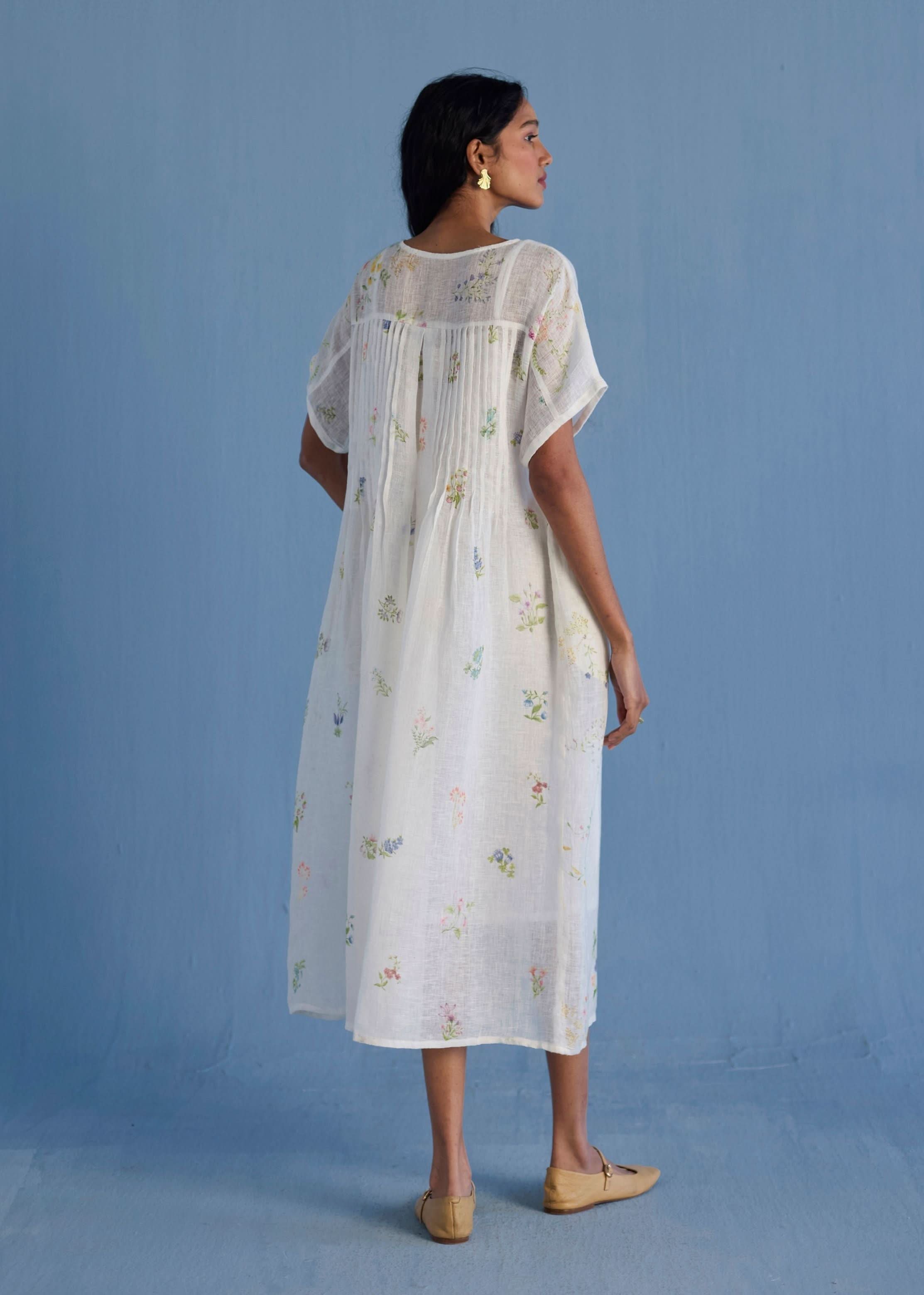 A timeless and easy-to-wear soft yarn-dyed linen dress designed with a soft timeless hand-painted floral print, pockets and intricate pleat details at the back for easy movement and style. The Uniko dress is perfect to wear for busy days running around to days spent lazing around.