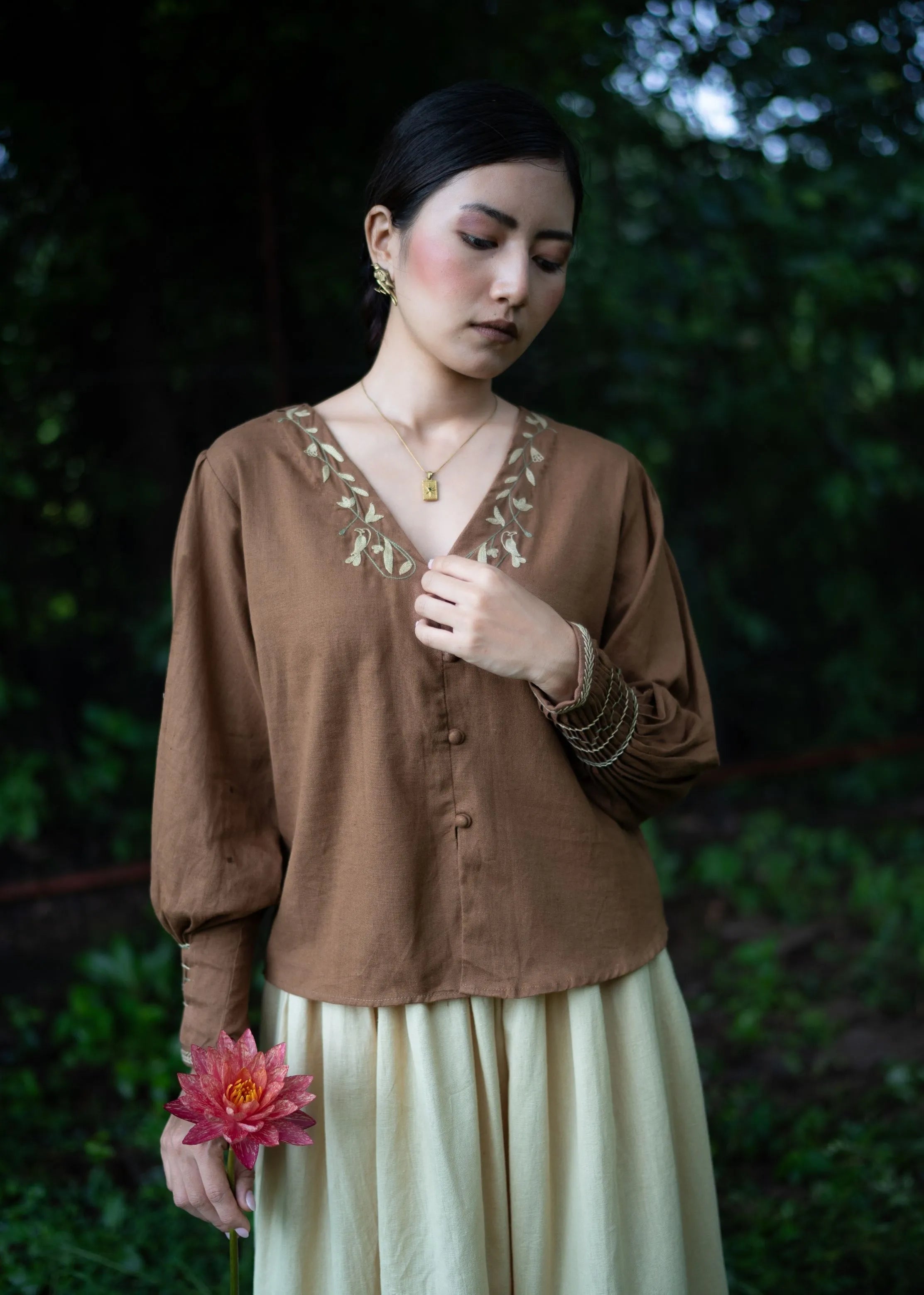 URNAM creates timeless wardrobe pieces from natural fabrics, with versatile silhouettes and intricate handcraft. Inspired by Indian artistry, each piece blends heritage surface design techniques with modern elegance, making it a conscious choice for every season of life.