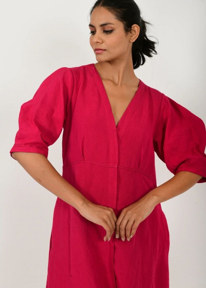 Viva Magenta Linen Bell Dress in 100% Organic Cotton / Gots Certified fabric. Surface technique involved - DYED